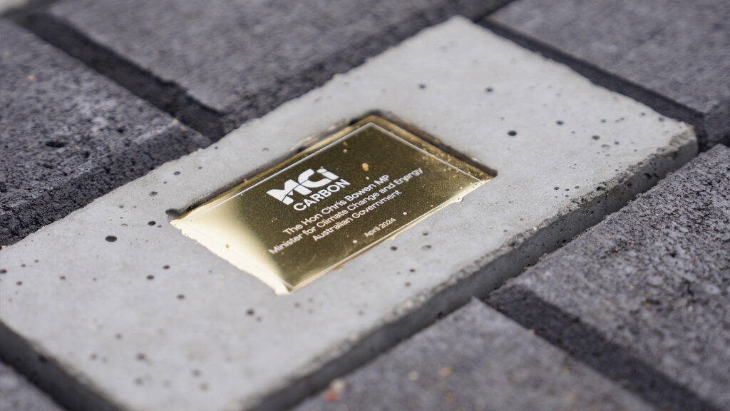 Minister Bowen placed a low-carbon cement brick in the site’s ‘Pathway to Net Zero’, representing the tangible impact of MCi’s technology which locks away CO2 permanently and safely into materials and other helpful products to decarbonise the built environment and manufacturing.
